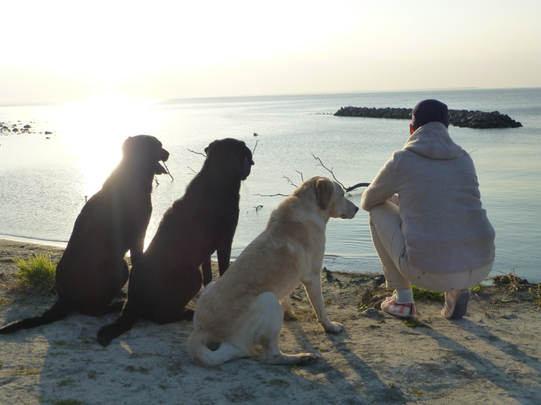 Die Hunde durften im und am Wasser toben und wir genossen den Blick auf die abendliche Wiek.